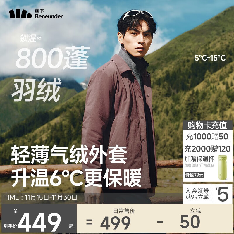 蕉下(beneunder)气绒服男衬衫外套可翻领户外休闲通勤 夹克外套CL237秋岩棕L