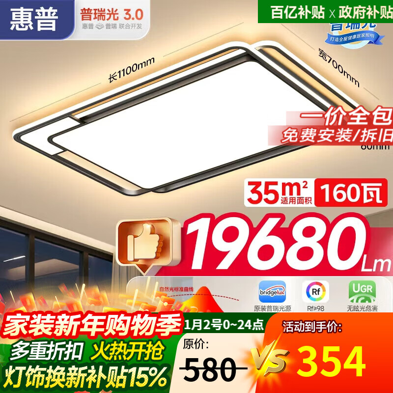 惠普灯具客厅主灯2025新款吸顶灯现代简约大气全屋套餐灯具组合 160W 35㎡内适用 -110cm喵喵精灵