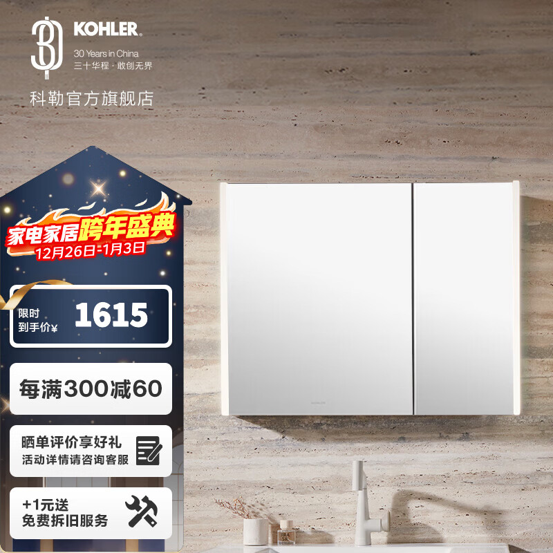 科勒(KOHLER)维适卫生间镜柜洗手间浴室家具镜柜 预售30天内发货 维适镜柜 带灯款1000mm