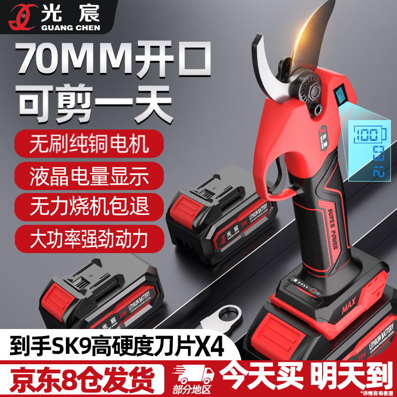 光宸电动剪刀剪树枝充电果树园林修枝剪刀修枝剪子剪枝机园艺剪 旗舰无刷款(开口5.5CM)10节两电一充