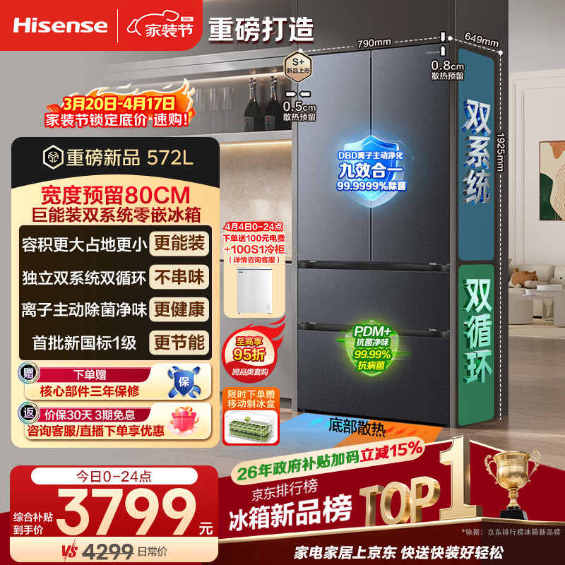 海信572L冰箱法式多门冰箱双系统零嵌大容量主动除菌净味超薄超窄冰箱BCD-572E5SFZSD国家补贴