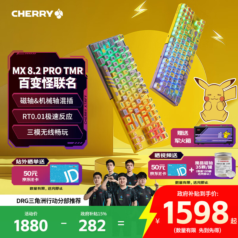 CHERRY樱桃宝可梦百变怪MX8.2PRO HYBRID磁轴键盘87机械键盘无线混插电竞游戏无畏契约三角洲RT快速触发