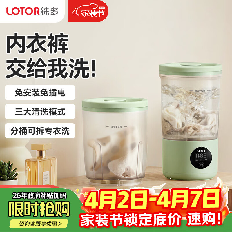 LOTOR徕多洗衣杯迷你内衣内裤专用袜子机小型宿舍洗衣杯便携式袜子双杯二合一洗衣杯双杯款