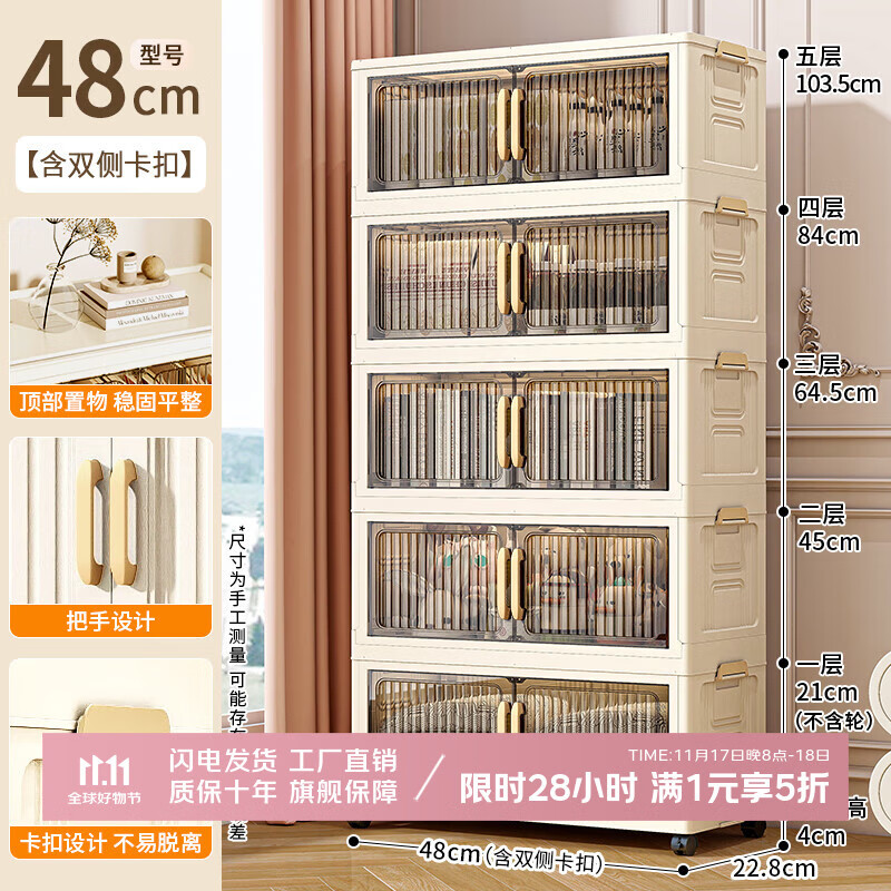 纳份爱收纳柜加厚塑料玩具零食储物柜卧室衣物置物柜子床头整理柜飘窗箱 48面宽【条纹茶透】 5层 【99.99%超值店长推荐】
