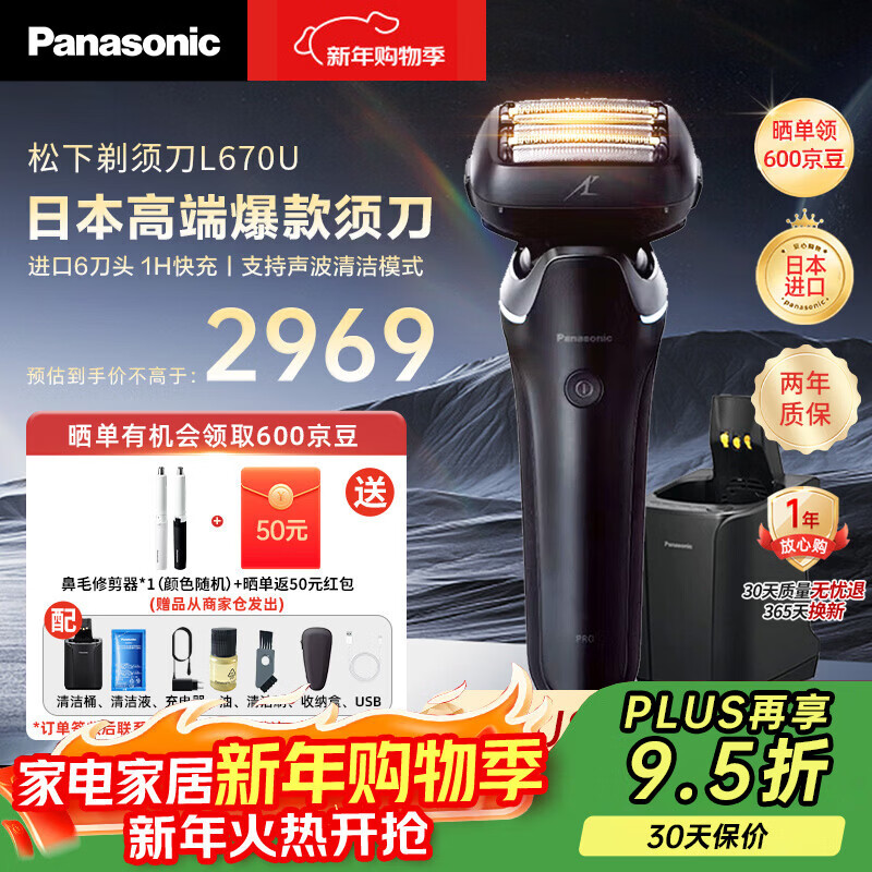 松下(Panasonic)日本原装进口新款ES-L670U-K黑色往复式6刀头 男士电动剃须刮胡刀 便携车载 旅行送老公 父亲礼物