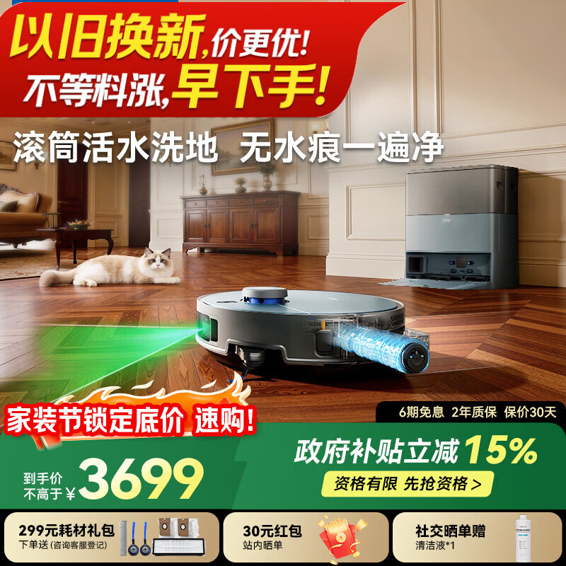 海尔(Haier)含光R10Max 京东专属扫地机器人扫拖洗烘一体滚筒洗地机器人自动集尘洗地机水箱版 RHSA-R10MaxU1