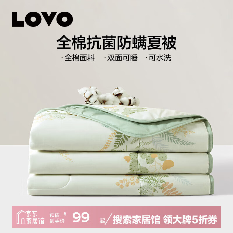 LOVO罗莱生活旗下品牌 全棉纯棉夏凉被空调被子可水洗抗菌防螨夏被 【全棉抗菌防螨】微风知晓 220*240cm