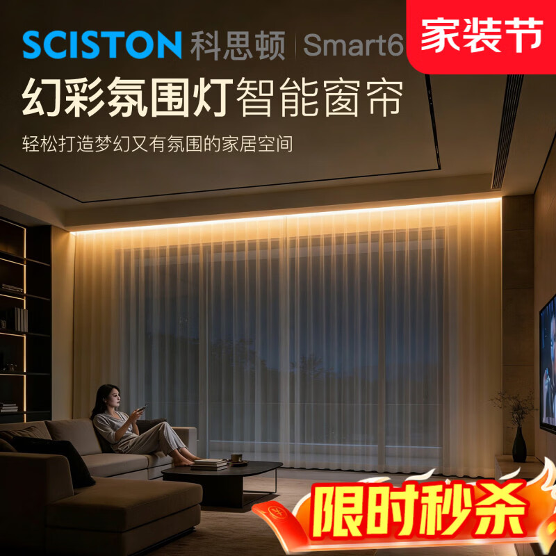 科思顿COB氛围灯带智能窗帘轨道RGB幻彩Smart6专用无极调光已接入米家 【包安装】3.5米L型U型弯轨(灯带+电机轨道)