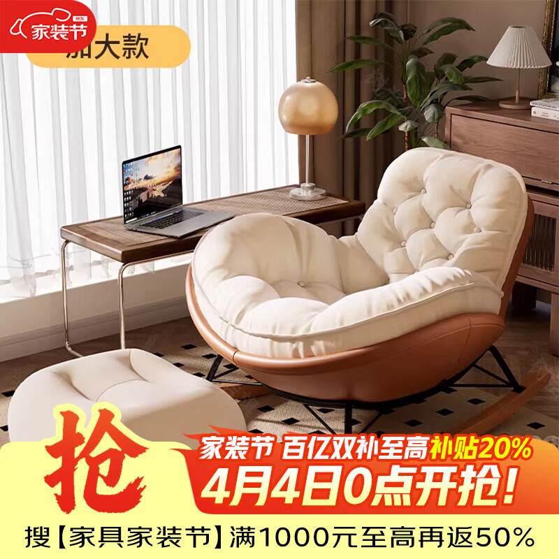 树浩家用阳台躺椅单人客厅摇椅懒人沙发卧室午休座椅小户型沙发靠背椅 【加大款】贵妃橙拼米白+脚踏-麂皮绒
