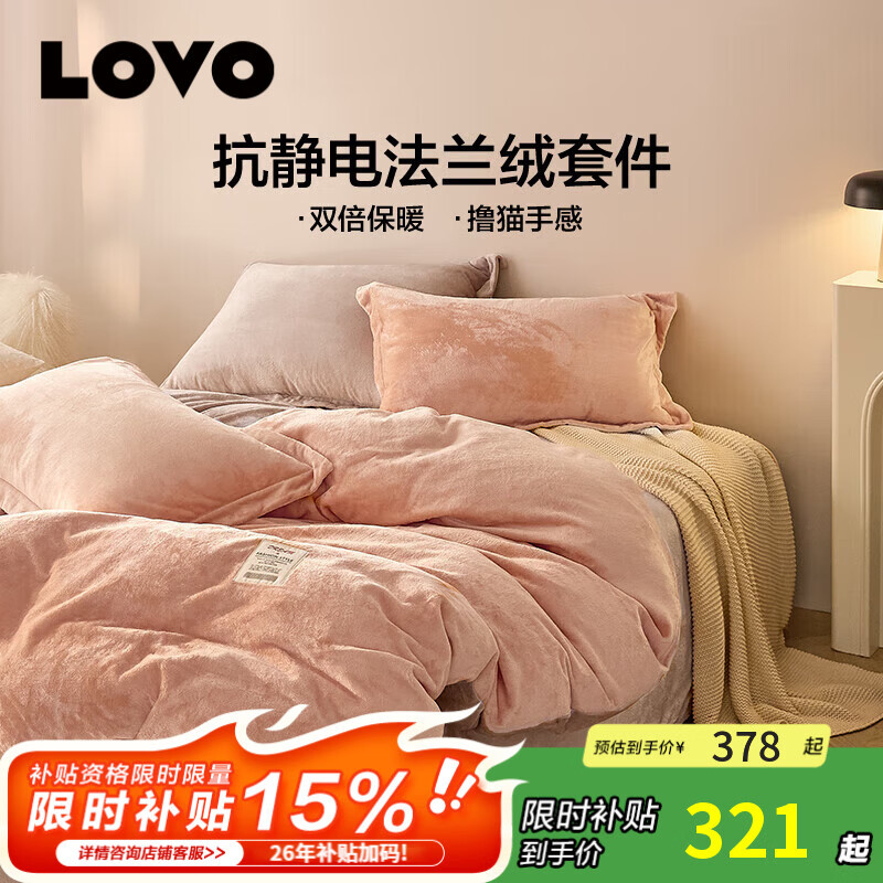 LOVO罗莱生活 素色四件套法兰绒牛奶绒公主风床上用品加厚保暖单双人 【A级防静电+加厚法兰绒】桃人喜欢 1.5米 床单款 (被套200*230cm)