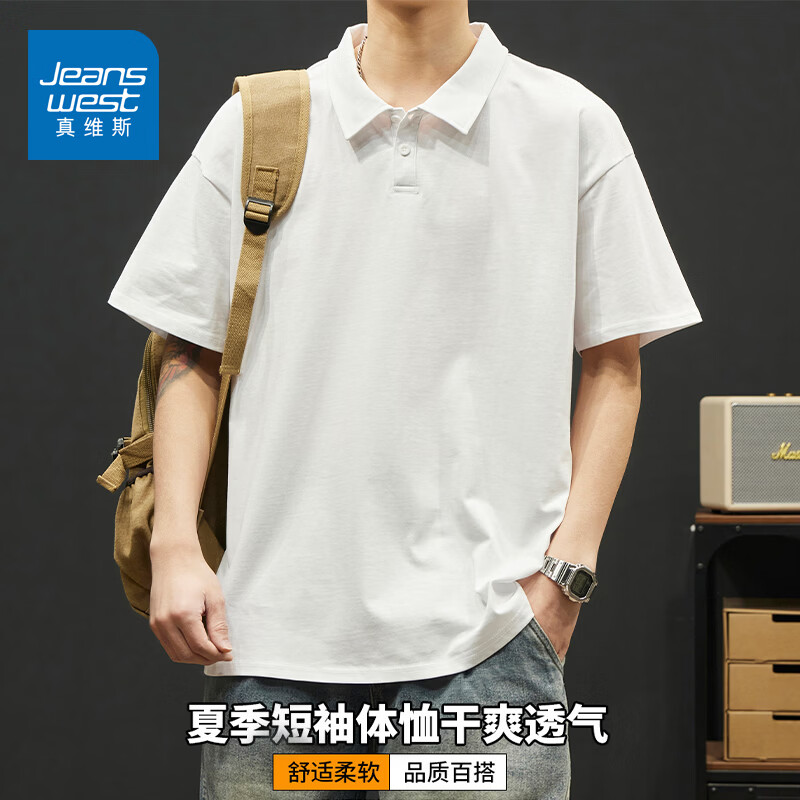 真维斯短袖POLO衫男夏季新款宽松百搭打底衫翻领休闲T恤上衣潮 白色 M