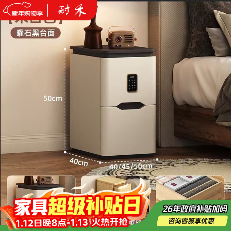 耐禾实木床头柜超窄家用卧室2026爆款小型极窄简约现代免安装收纳柜子 胡桃色台面-米白色【智能锁】 实木抽屉款:长25宽40高50cm
