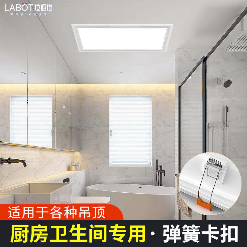 拉伯塔卫生间浴室弹簧卡扣平板灯蜂窝石膏板30*30*60嵌入式厨房天花板灯 300*300【24W】三防 升级款【全光谱】护眼