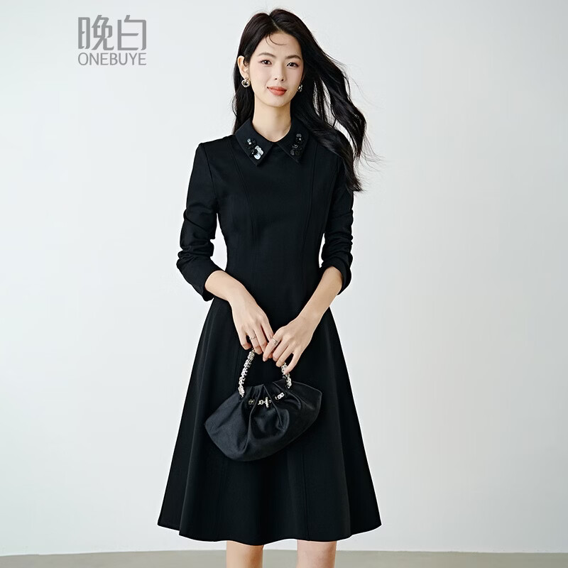 晚白【新品】2026春款时尚不易皱免烫礼服裙子修身显瘦职场通勤连衣裙 黑色 M