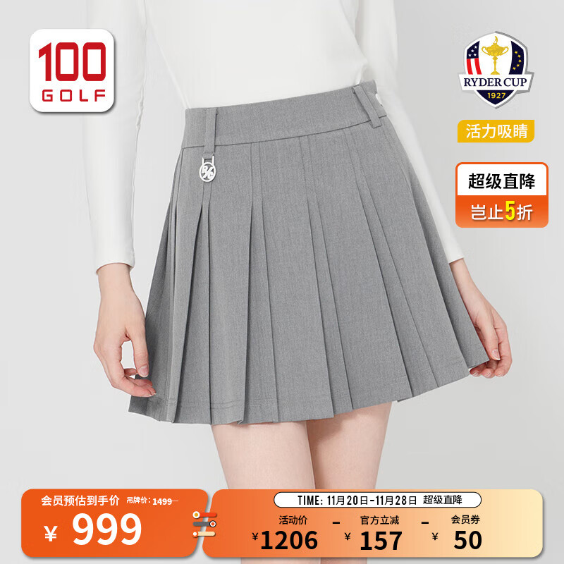RYDER CUP莱德杯高尔夫服装女装短裙25秋冬保暖舒适微弹显瘦复古运动百褶裙 灰色 M