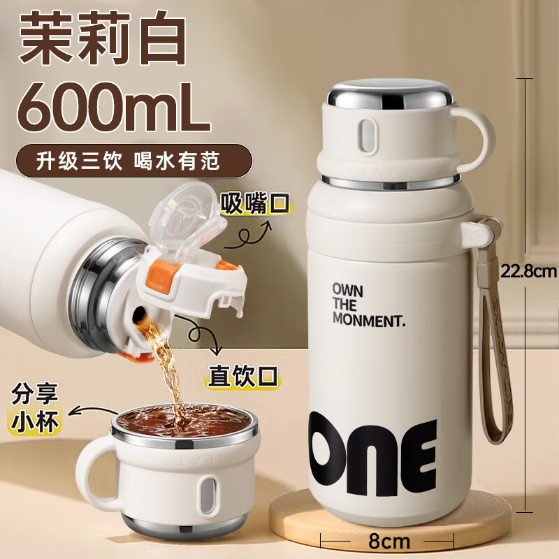AILUKI日本保温杯初中生男新款学生上学专用儿童高颜值青少年孩正品水杯 【316】白600ML【保温保冷】直饮