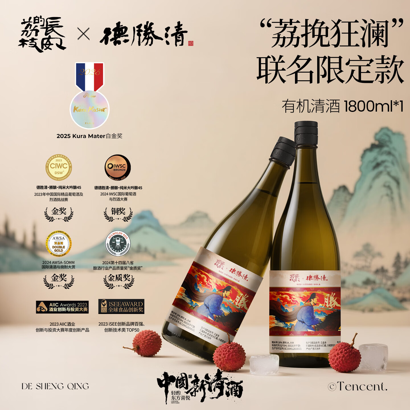 德胜清 x长安的荔枝联名 荔挽狂澜三割八分有机清酒1800ml 清爽微醺 38有机清酒1800ml