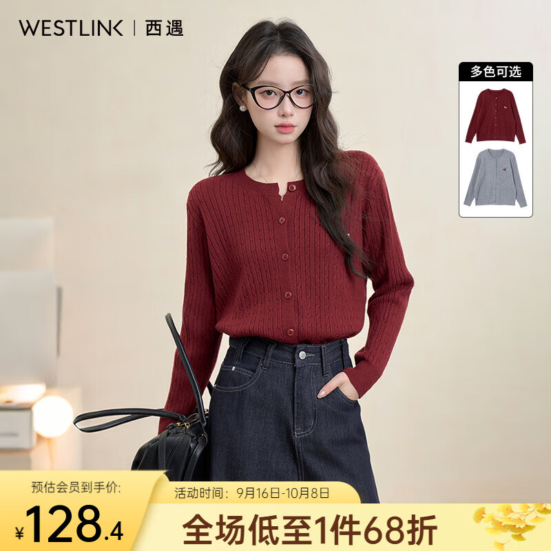 西遇(Westlink)针织开衫外套女秋季新款温柔外穿圆领麻花宽松长袖毛衣 红色 (预售15天) M (160)