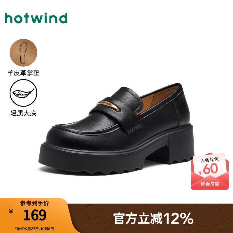 热风粗跟乐福鞋女鞋2025年春季新款女士通勤百搭单鞋配裙子小皮鞋 01黑色 37