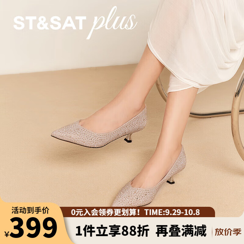 星期六性感单鞋2025秋款宴会正装一脚蹬尖头优雅高跟鞋SSD3111543 香槟金色 39