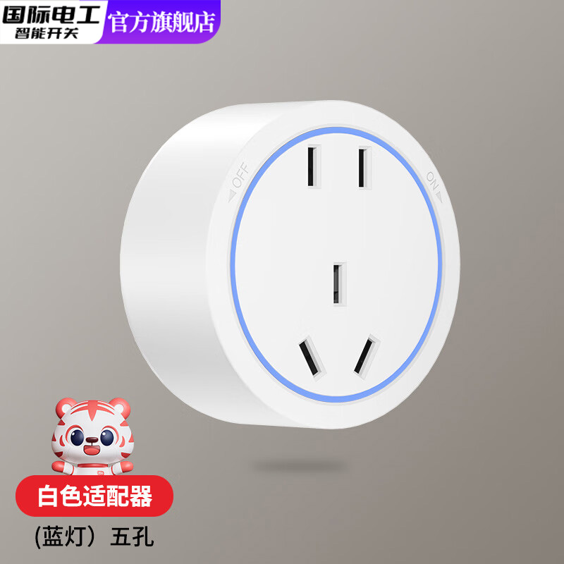 国际电工智能语音轨道插座家用厨房餐边柜移动带灯数显屏滑动插排功率监测 大五孔蓝灯适配器