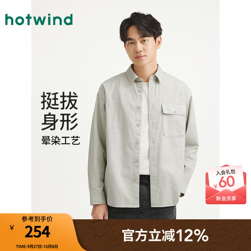 热风【商场同款】男士长袖衬衫2025年秋季新款晕染宽松工装风衬衣外套 09灰色 M