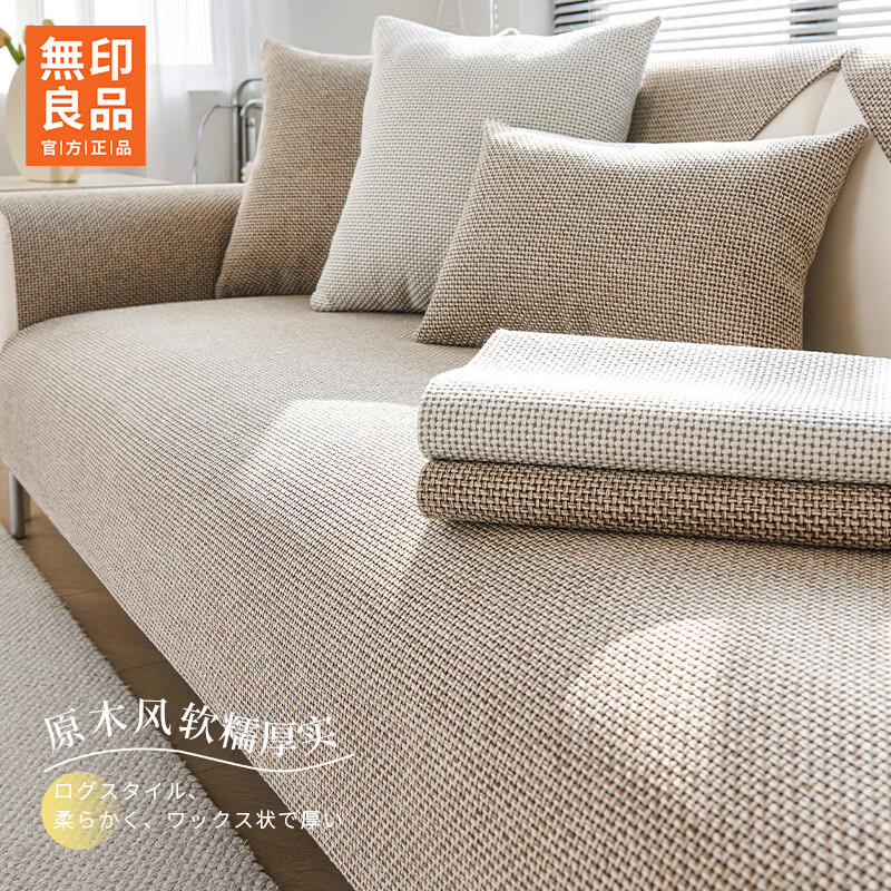 无印良品沙发垫仿棉麻四季通用沙发垫防滑沙发座垫皮沙发专用垫沙发盖垫 日式仿棉麻-朴居卡其( 高密编织 6D硅胶更防滑 ) 70X70cm(扶手/靠背)