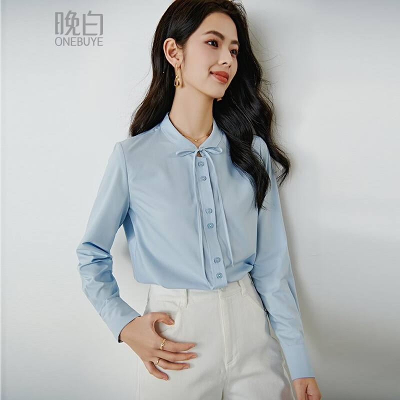 晚白2026年春款miu系气质可拆卸系带立领上衣挺括抗皱减龄通勤衬衫女 浅蓝色 L