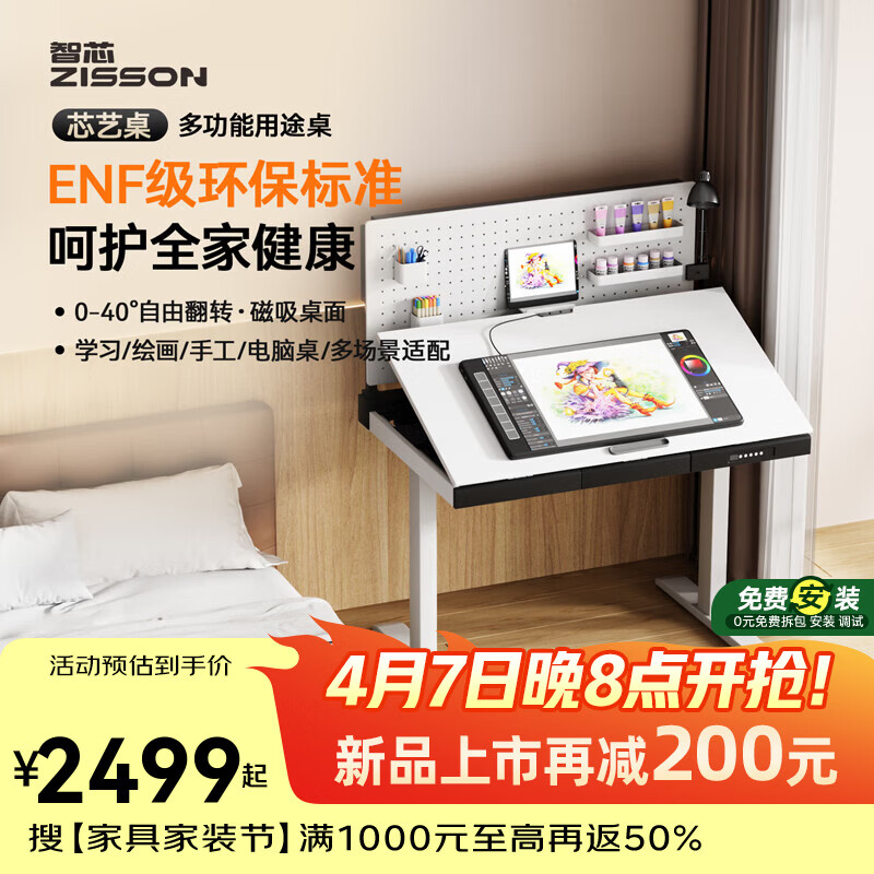 智芯2026新款儿童电动升降桌学习桌可翻转单人工作台升降学习书桌 芯艺桌(磁吸桌面+0~40°桌面翻转) 1040x700x730m