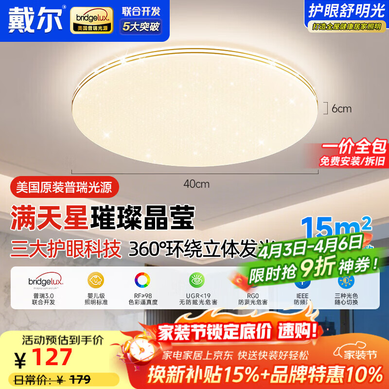 戴尔led吸顶灯现代简约护眼超薄书房卧室中山灯具满天星轻奢风包安装