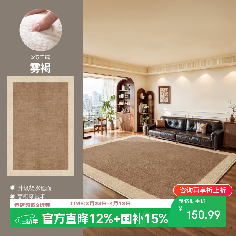 著忆地毯客厅中古风卧室2026新款床边免洗可擦复古简约沙发高级感地垫 S仿羊绒-雾褐 140x200CM【0甲醛 无异味 不藏灰】