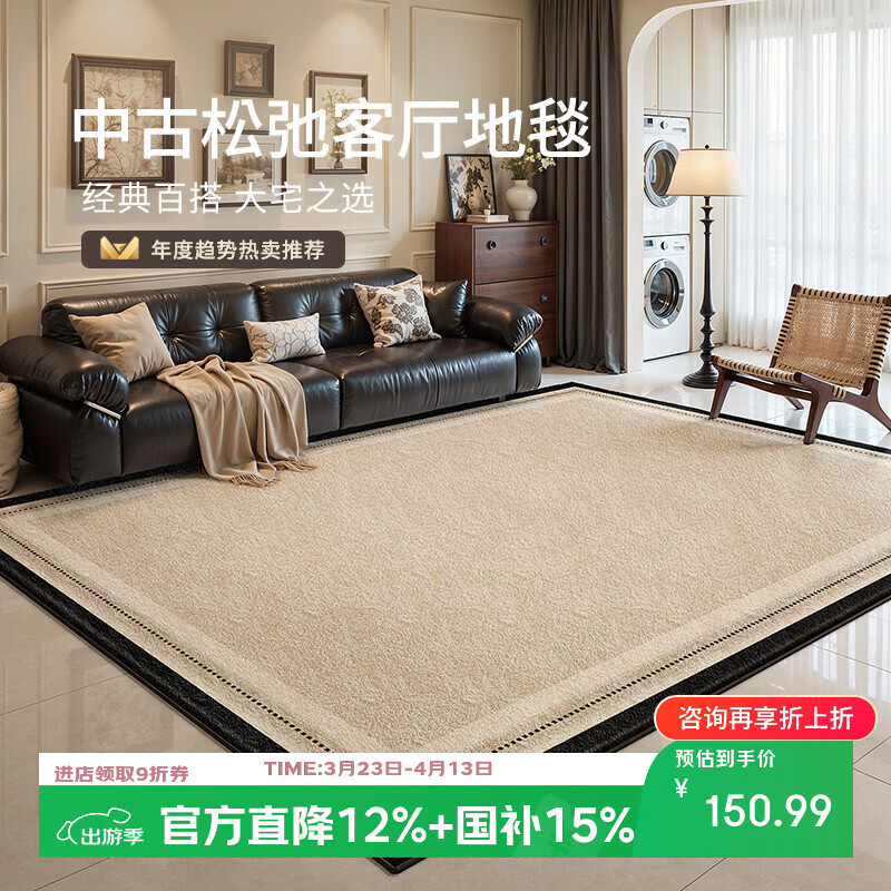 著忆中古风地毯客厅2026新款免洗可擦复古沙发高级卧室房间免打理地垫 S波斯绒-漠月 140*200CM【细腻仿羊绒】