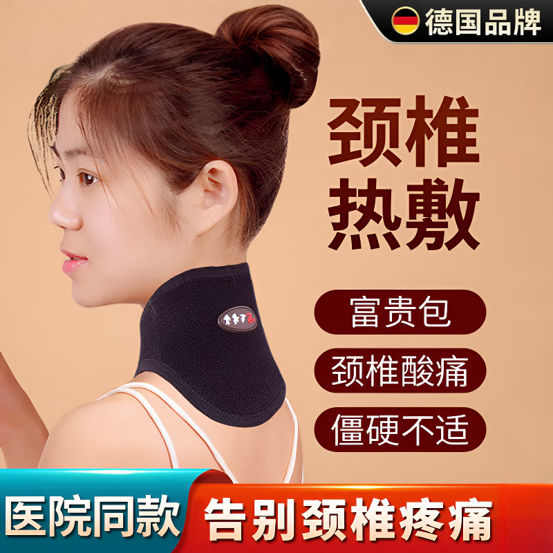 WCZ德国护颈脖套颈椎理疗热敷袋加热脖子保暖套发热围脖神器男女士 经典款黑色(发热+5颗磁石) 均码
