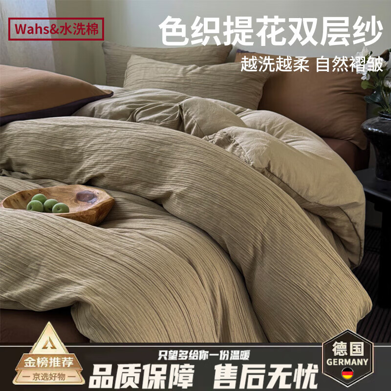 DEATKN德国A类双层纱2025新款四件套床上用品非全棉棉被套被罩床单三件 升级A类认证款-燕麦棕【已质检_小红书】 床单款 0.9m三件套适合150*200cm被子