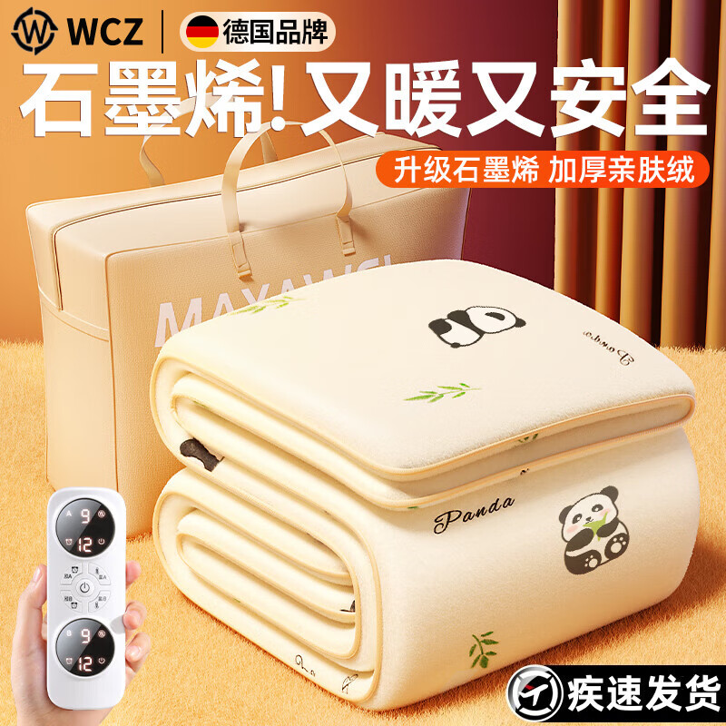 WCZ德国石墨烯电热毯单双人电褥子2025官方旗舰双控调温学生宿舍家用 基础款150*70cm-大熊猫