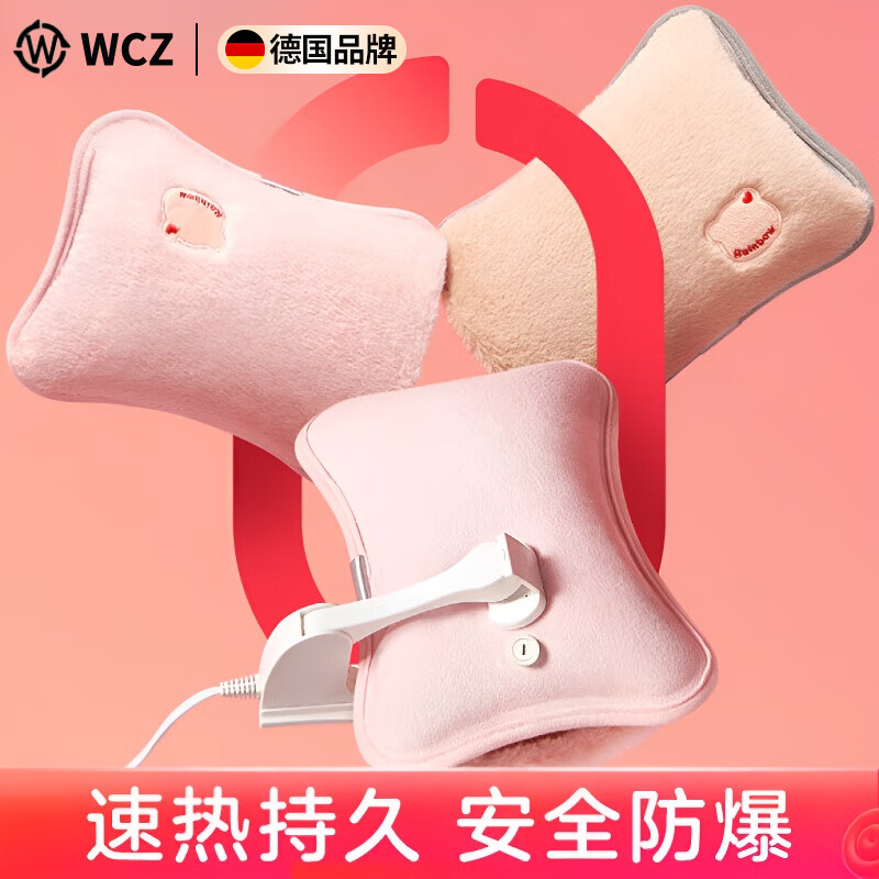 WCZ德国热水袋暖手宝充电式暖水袋防爆注水热敷热宝暖肚子神器 一体水晶绒-气粉