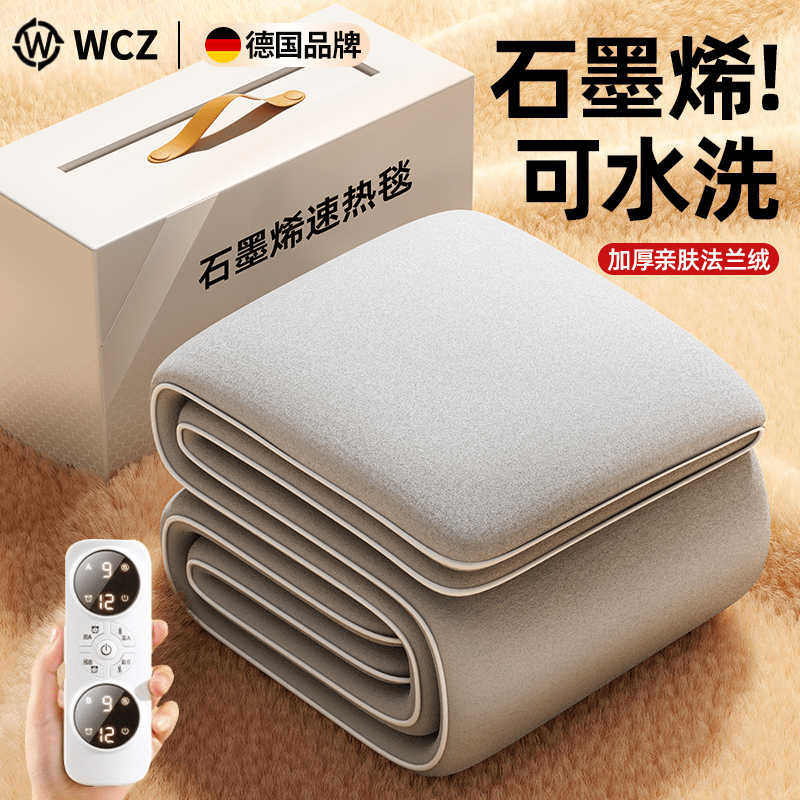 WCZ德国石墨烯电热毯双人家用2025新款调温电褥子单人冬季除螨烘被 亲肤绒150*70cm-灰色
