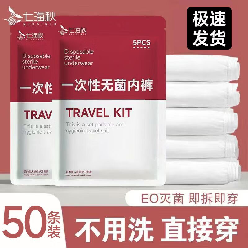 AILUKI一次性内裤女士新款旅游灭菌免洗便携短裤月子孕妇外出旅行日抛裤 【10包- 50条】便携日抛EO灭菌 M 【建议90斤左右】