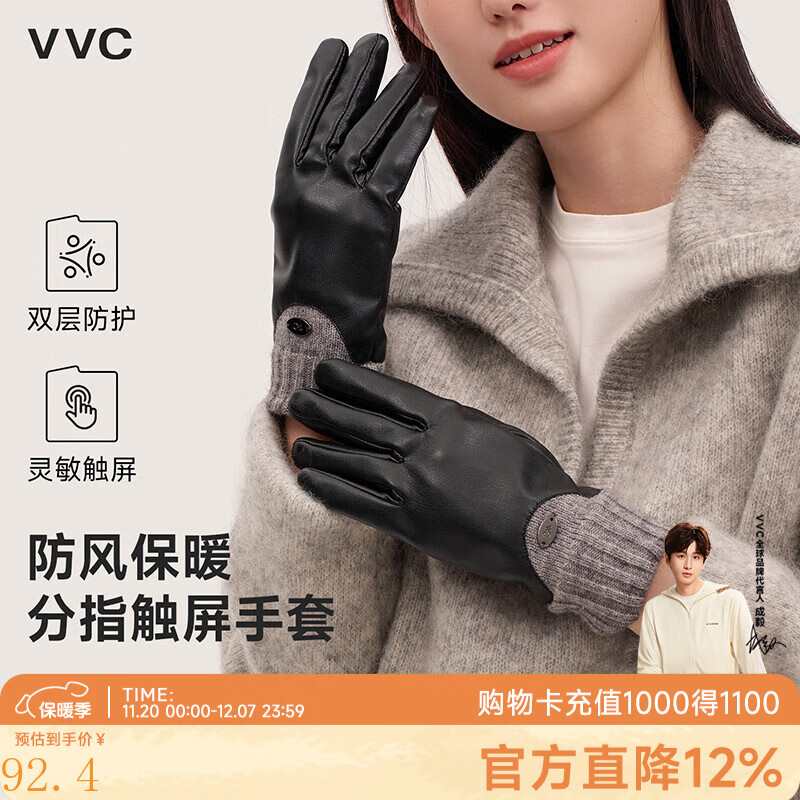 VVC手套女士秋冬季加绒加厚保暖可触屏骑行防风防寒骑行开车手套 深邃黑