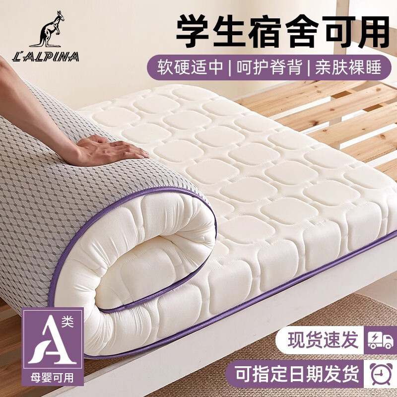 阿尔皮纳袋鼠乳胶记忆棉床垫遮盖物0.9x1.9米宿舍软垫子大学生宿舍单人床褥子 笑脸白+紫边/约6cm厚 学生专用-80x190cm