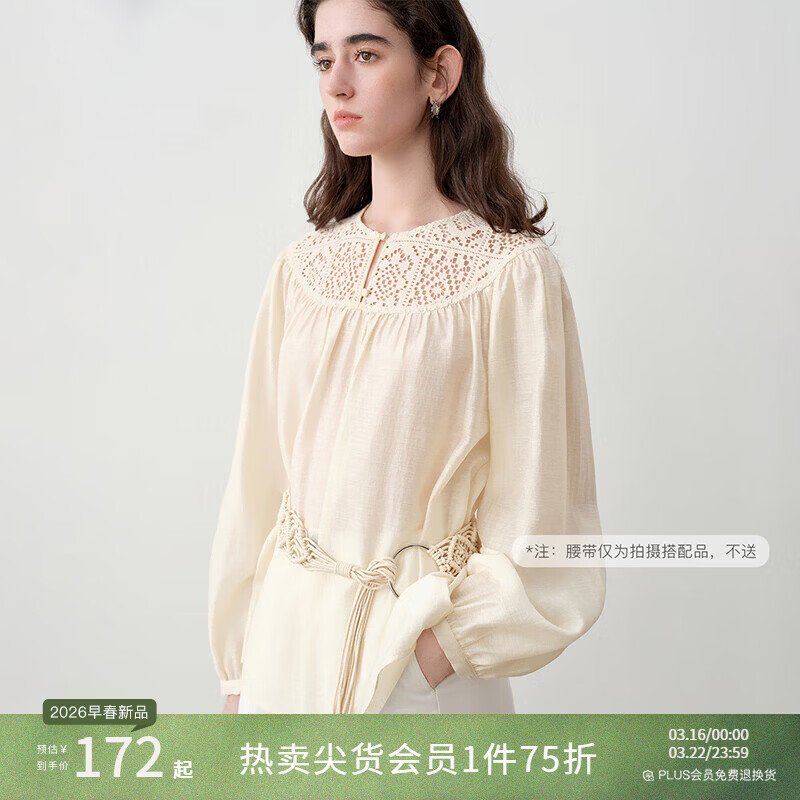 自巧小个子艺术感镂空拼接衬衫&垂感拖地阔腿裤套装女2026春新品 奶油米衬衫 XXS (尺码:1)