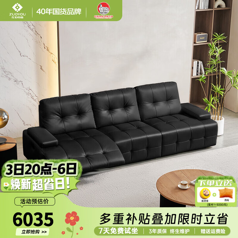 左右真皮直排沙发中小型现代简约轻奢半青皮家具牛皮劳伦斯沙发6088 [2]2.73米三人位双电动 玛瑙黑