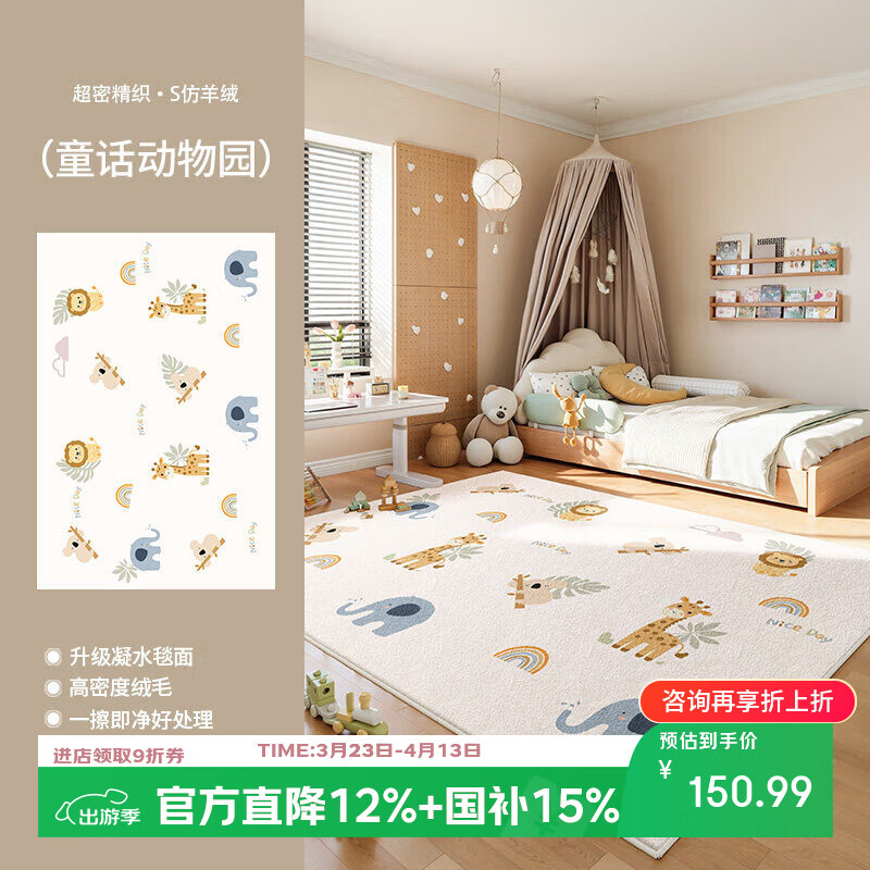 著忆地毯儿童房阅读区地垫卧室床边客厅2026新款女孩免打理毛绒多巴胺 S波斯绒-童话动物园 140x200CM【当季新款】
