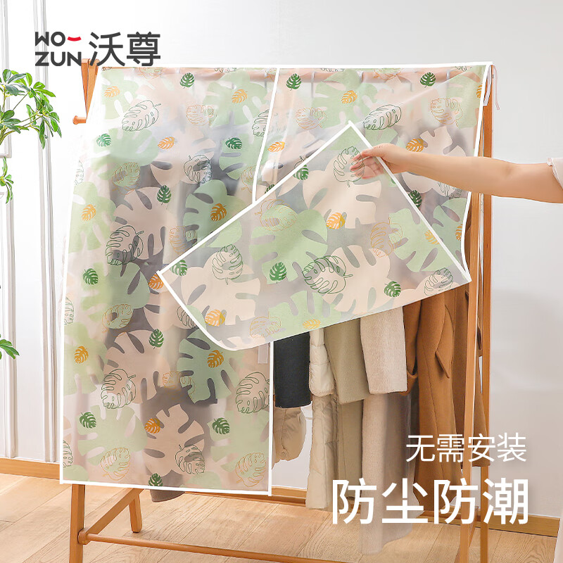 沃尊衣服防尘罩落地防尘盖布衣架透明挂式家用收纳衣物西服大衣遮尘布 绿色特大号-【加厚PVEA 半透可视】