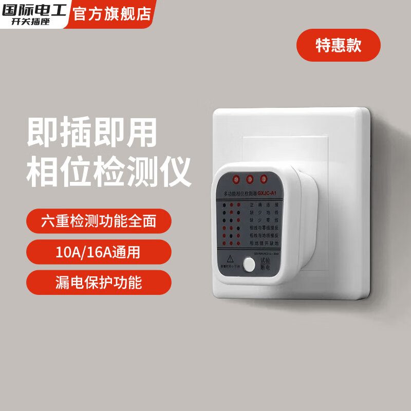 国际电工智能数显漏电相位检测仪10A/16A通用多功能线路电源性验电工 特惠款-相位检测仪