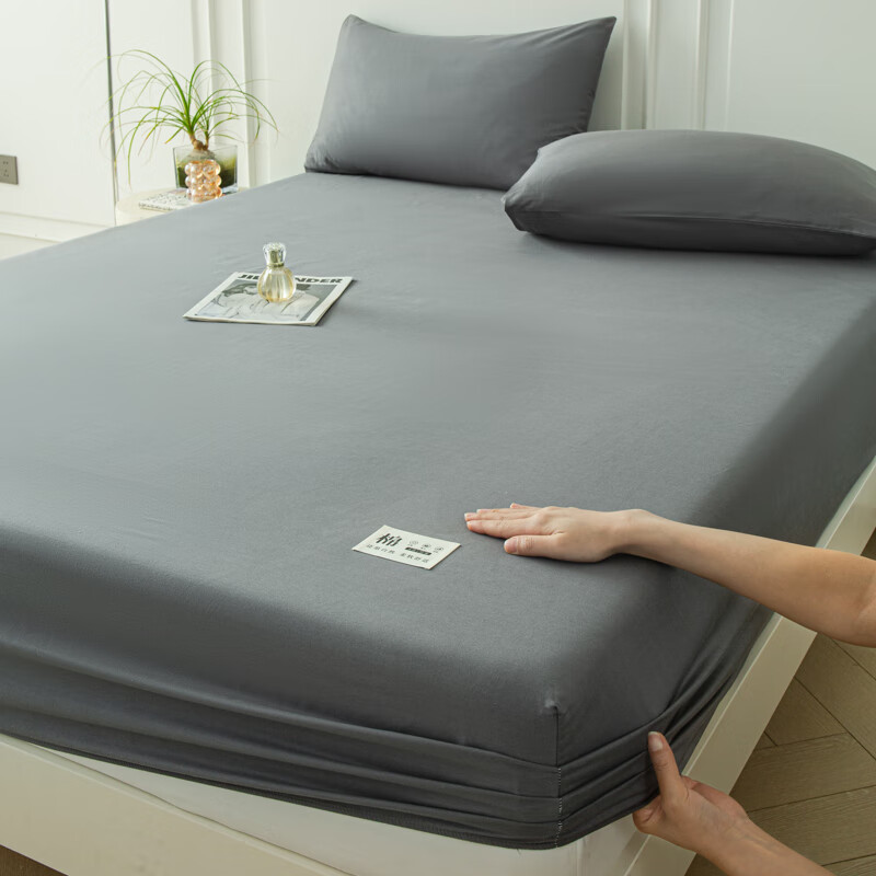 猫人A类纯棉床笠纯色单件100%全棉床垫保护罩单人防尘床罩三件套 石墨灰【100%新疆长绒棉】 单床笠:180*200cm