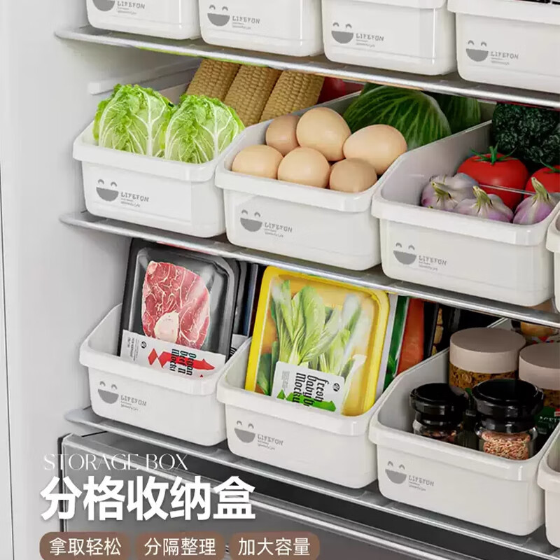 木格格厨房收纳盒食品级冰箱鸡蛋蔬菜保鲜盒分格收纳整理饮料储物盒子 1个装-中号【自带滚轮/配隔板】