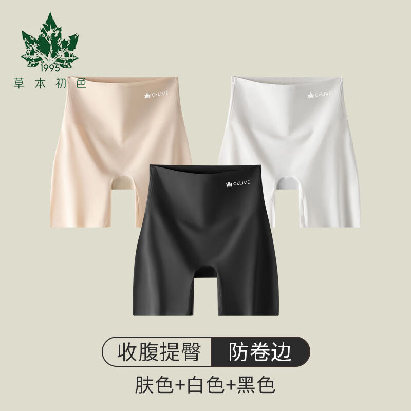 AILUKI草本初色冰丝无痕安全裤防走光女收腹提臀夏季薄款二三合一打底裤 肤色+白色+黑色【三合一收腹安全内裤】3条装 M 码80-100斤【推荐重量】