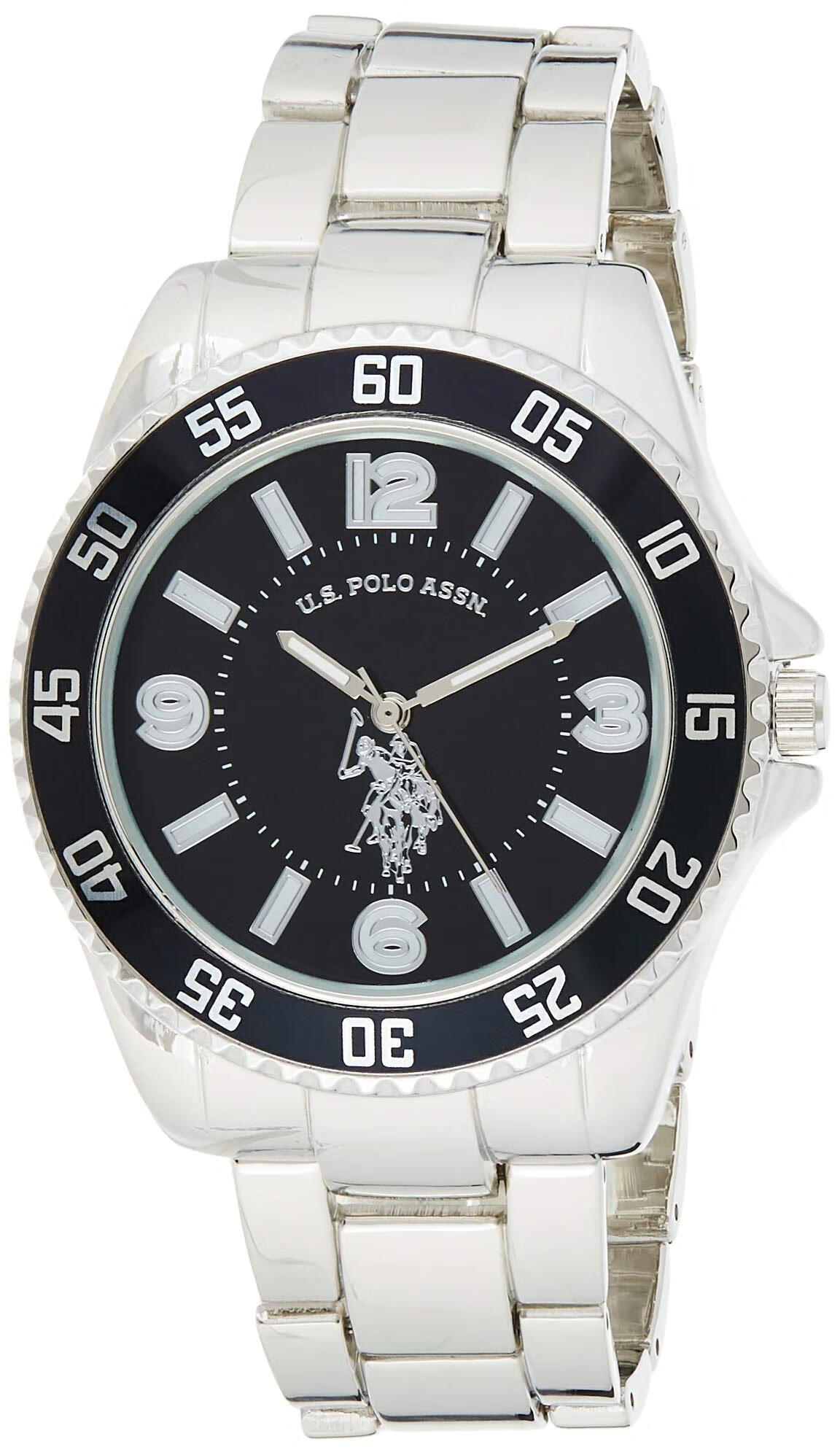 AccutimeU.S. Polo Assn. 男式银色手表 黑色 USC80515 SILVER/BLACK 45.0毫米