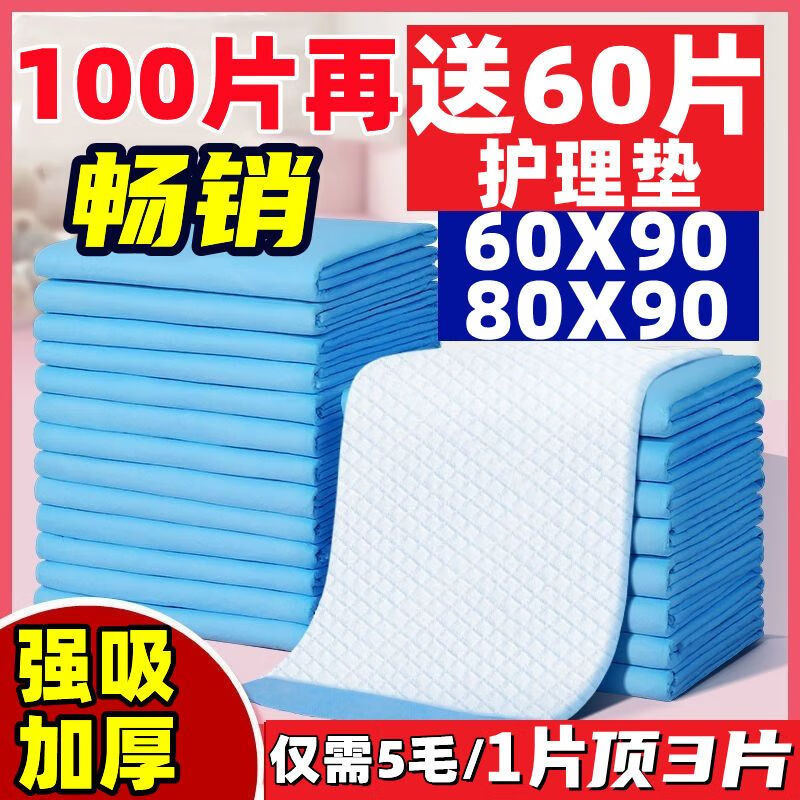 AILUKI成人护理垫老年人尿不湿加厚纸尿裤一次性隔尿垫片床垫产妇产褥垫 轻薄:60X90 100片再送60片